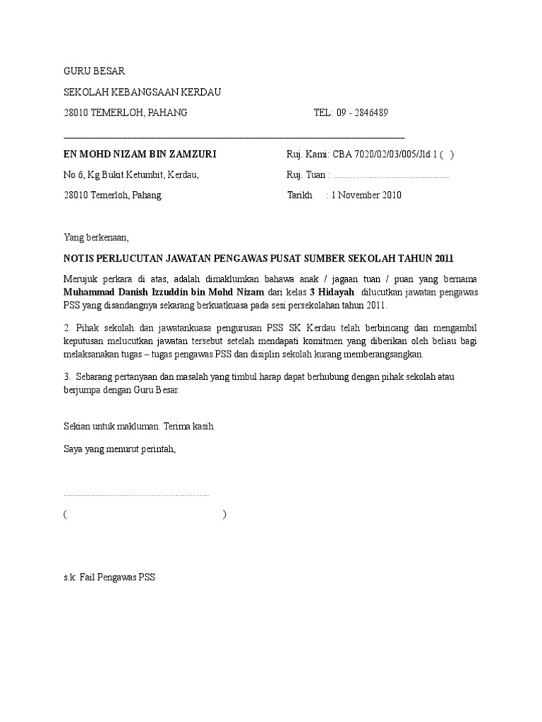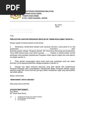 Surat Perlucutan Jawatan Pengawas Pdf