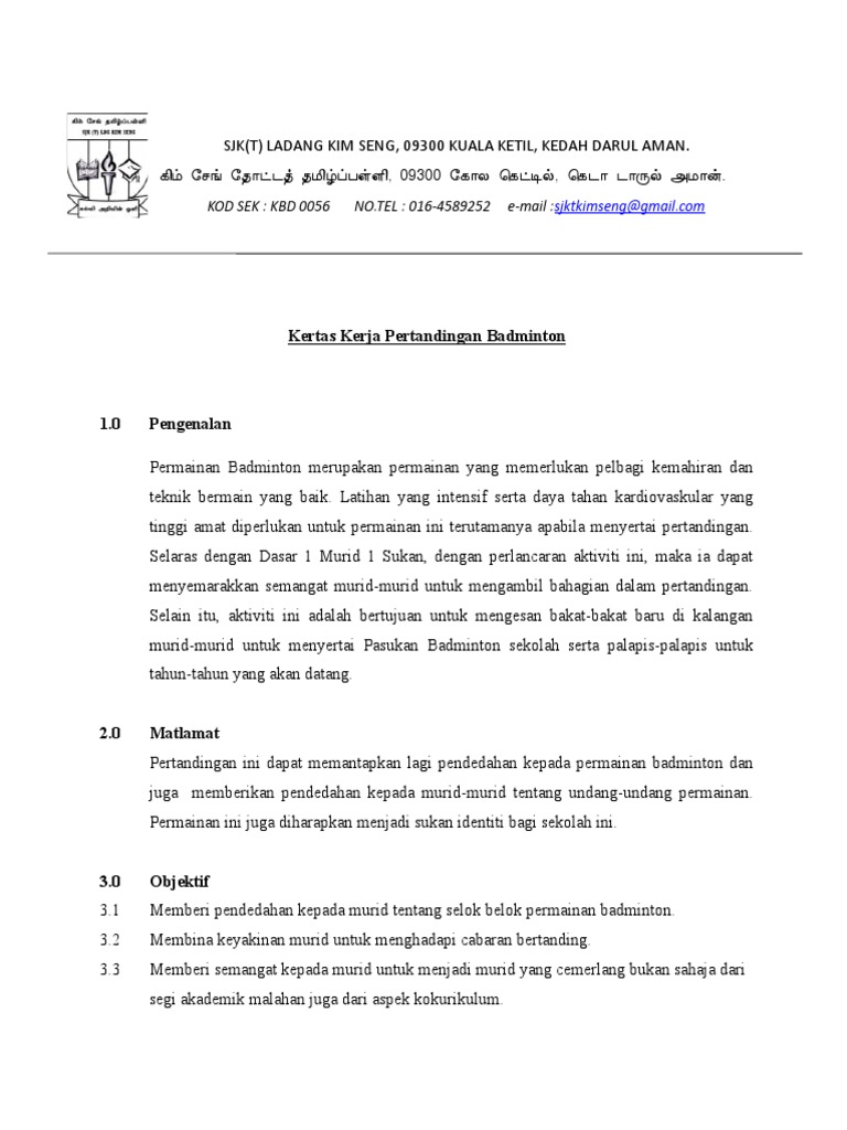 Contoh Kertas Kerja Badminton 2015 Pdf