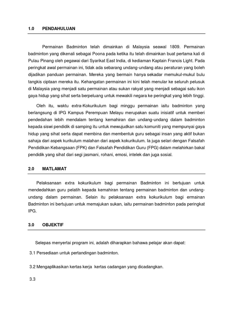 Contoh Kertas Kerja Klinik Badminton Pdf